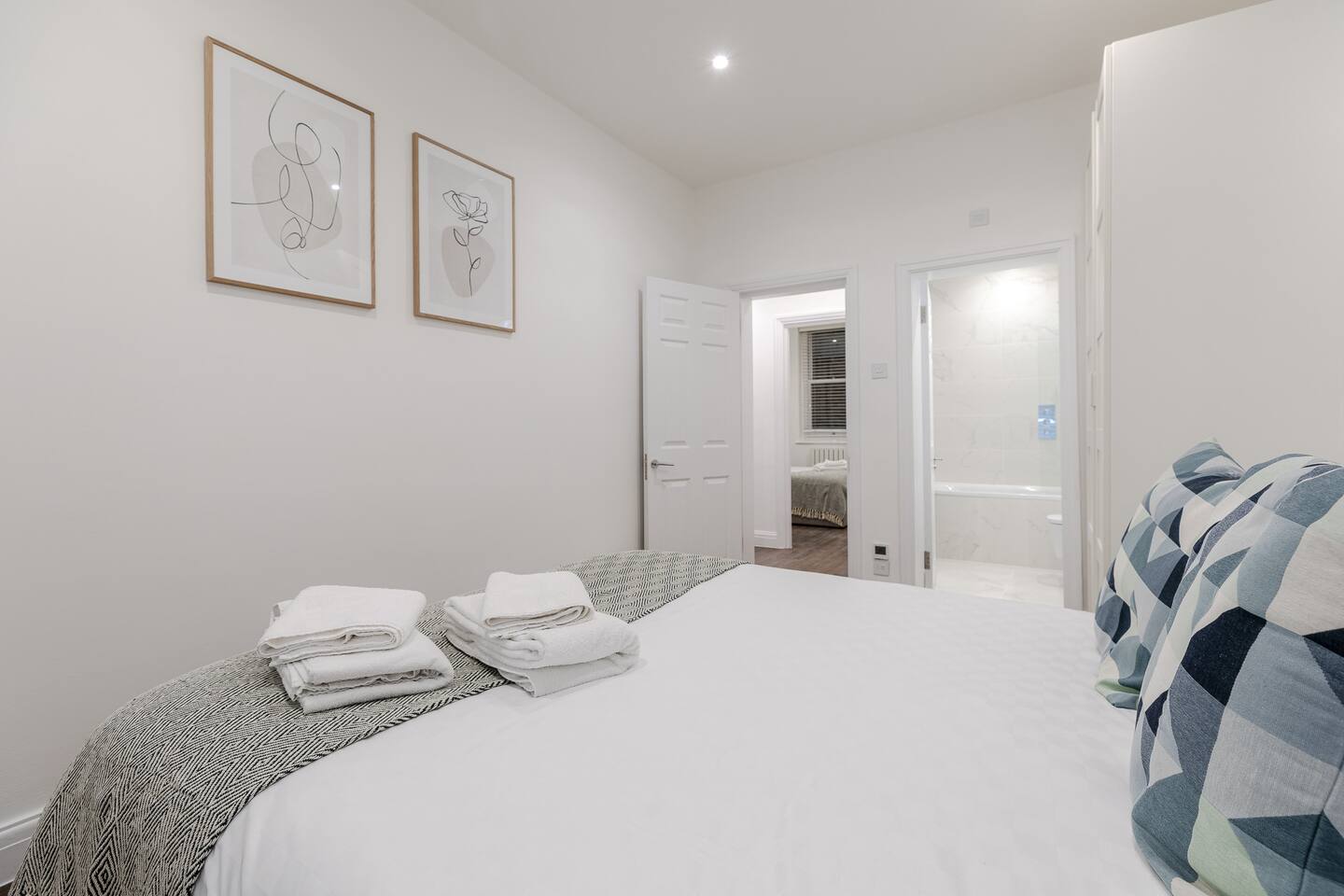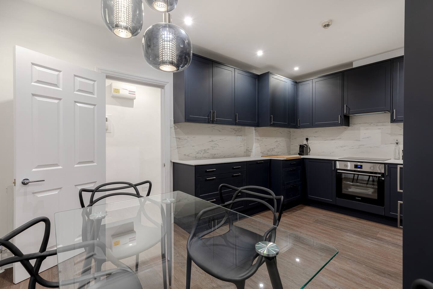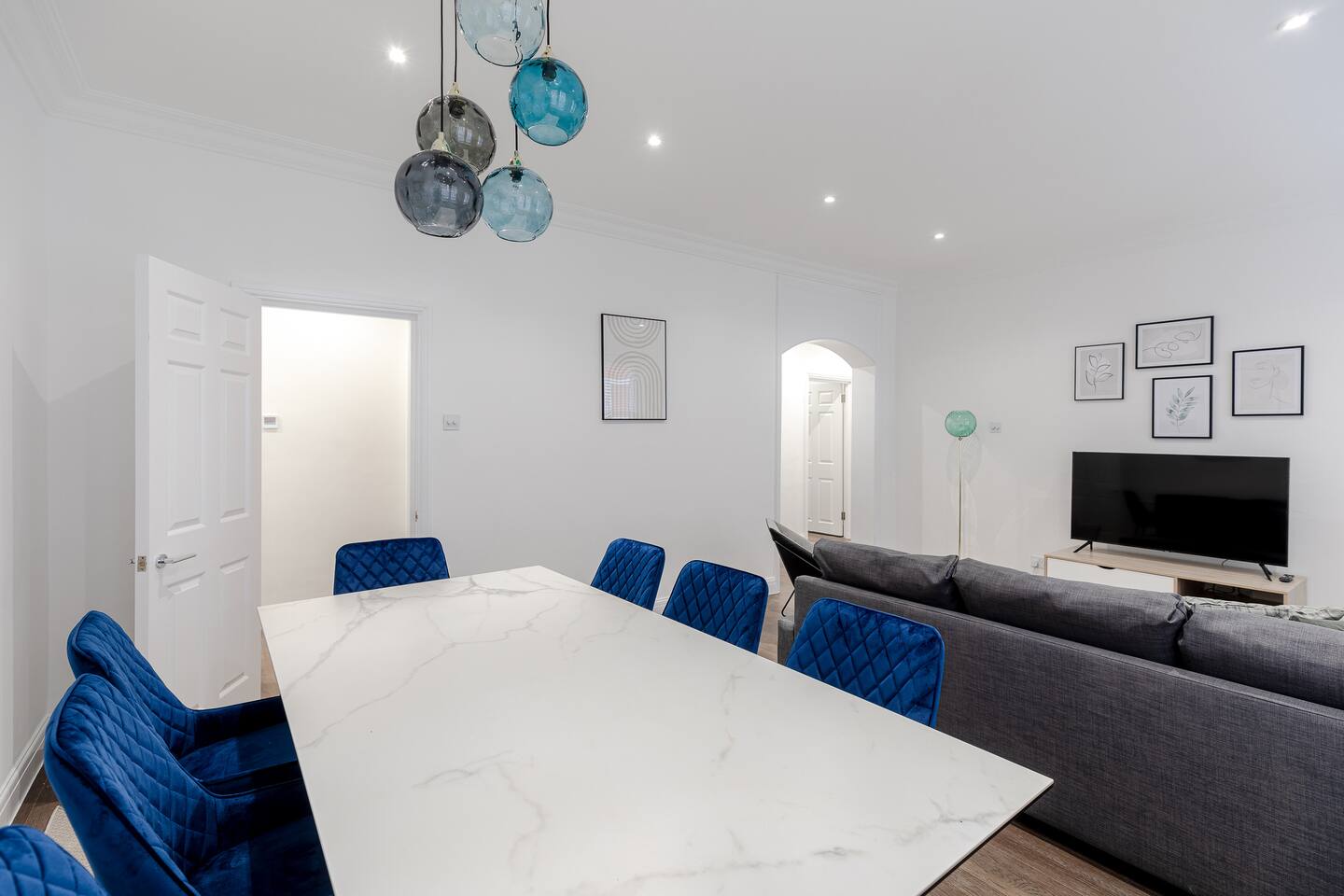 Every aspect of this apartment has been meticulously designed to provide comfort and convenience. From the tasteful decor to the high-quality furnishings, we have taken great care to create a space that feels like a home away from home. The Living room: Spacious and Luxurious Smart TV, ample comfortable seating including a large sofa, large dining space, modern decoration, spacious design. The bedrooms: A superior night sleep downtown Double beds with soft and lavish bedding, ample storage space, inviting ambiance for sleeping and relaxing, two en-suite bedrooms The kitchen: An ideal space for cooking and hosting Fully fitted modern kitchen with a large fridge, dishwasher, washing machine, electric oven, gas stove top and a breakfast bar. The bathrooms: time to refresh and recharge Fully equipped bathroom spaces, two en-suite bathrooms plus one communal bathroom, toiletries provided