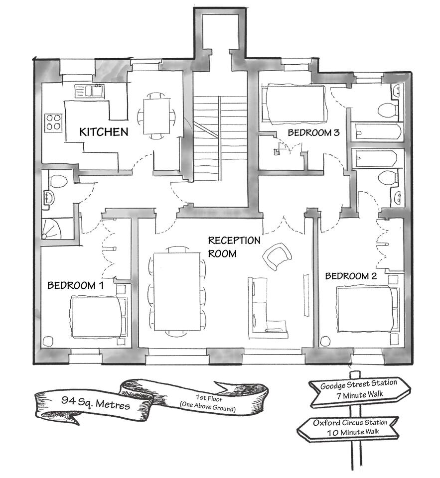Closest stations: Goodge Street station (Northern Line): 5 minute walk Oxford Circus (Central, Bakerloo & Victoria Lines): 8 minute walk To Heathrow: Walk to Tottenham Court Road station (10 minutes), Elizabeth Line direct to Heathrow (40 minutes). To Gatwick: Walk to Oxford Circus station (7 minutes), Victoria Line to Victoria (7 minutes), Gatwick Express to Gatwick (55 minutes). Nearby buses: 55, 73, 98, 380, N8, N25, N55, N73, N98, N207