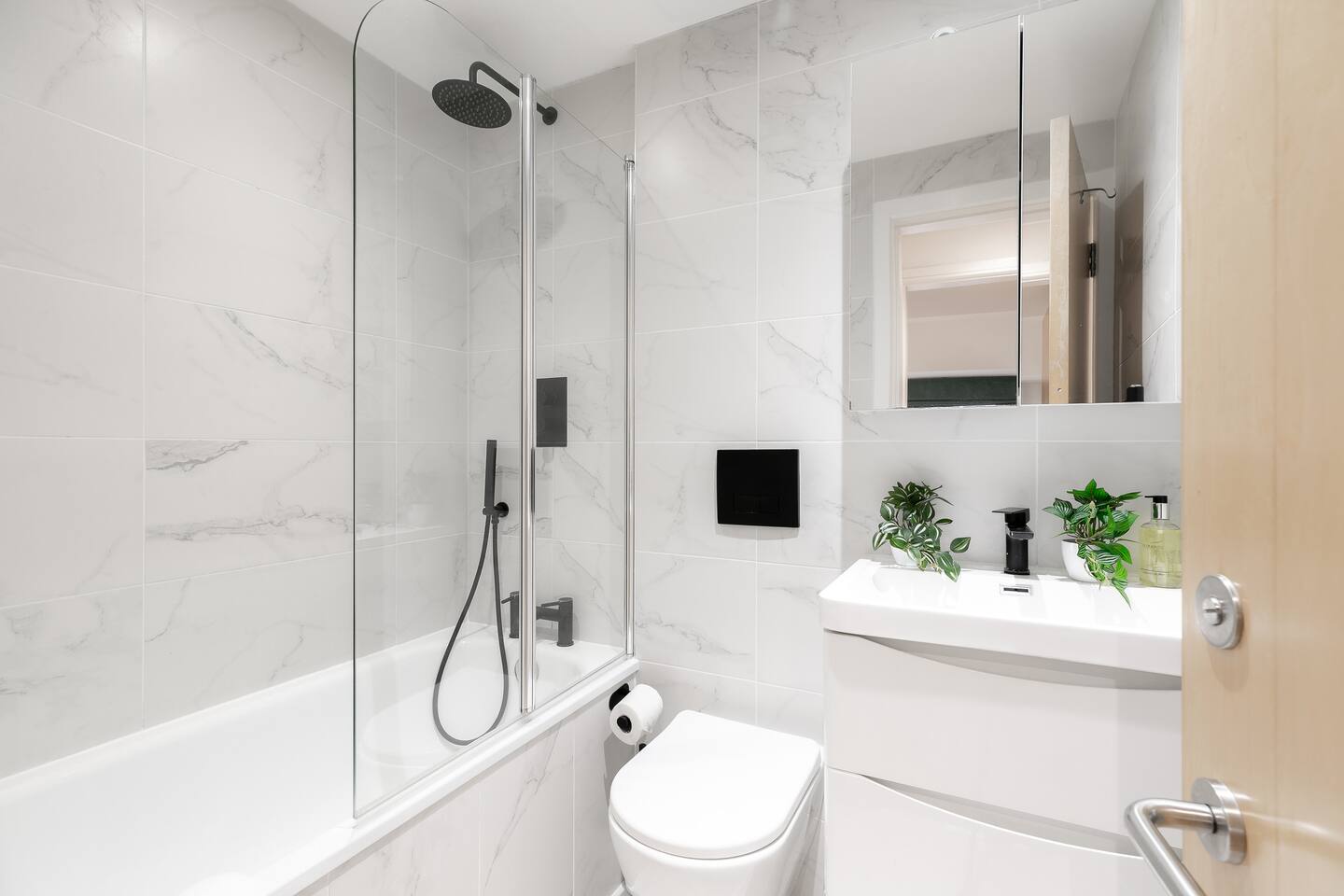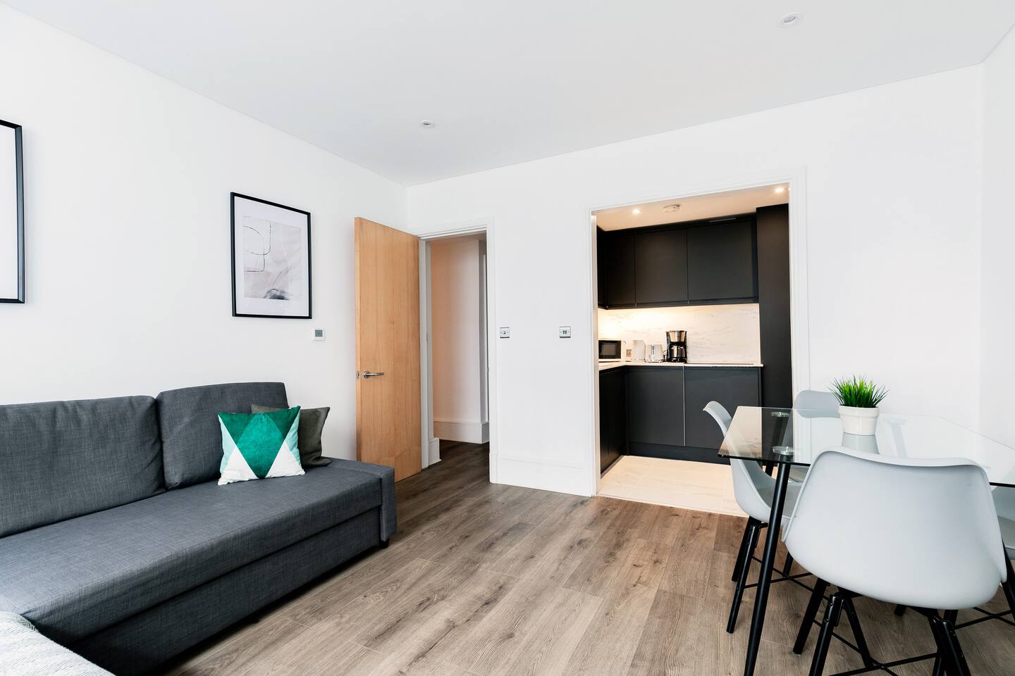 Our one bedroom apartment features a comfortable living area, a modern kitchen with all the amenities to serve you during your stay, and a bathroom in which you can relax and refresh after a day in London.