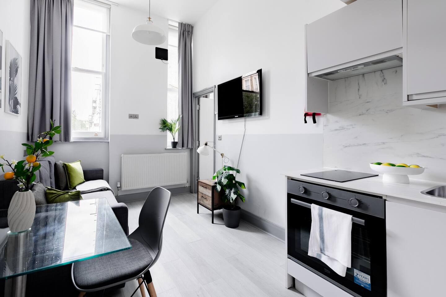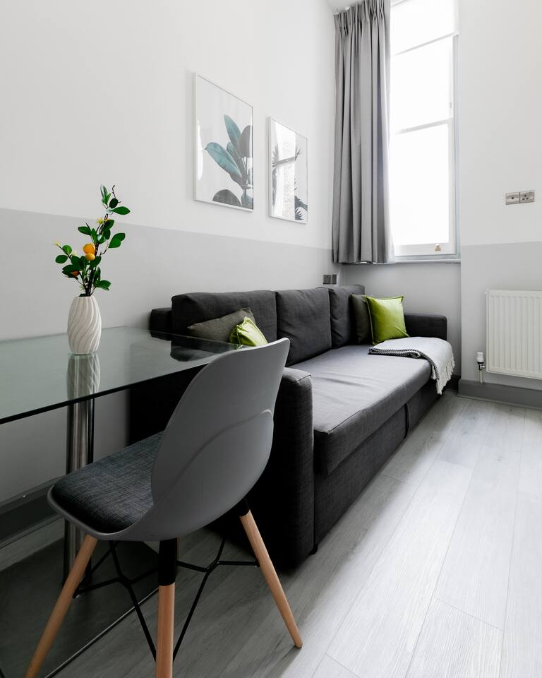 Welcome to our cozy one-bedroom flat, located just a short 5-minute walk from Earl's Court Underground Station. Situated on the ground floor, this stylishly designed accommodation offers comfort and convenience for your stay in London. As you enter, you'll find a compact yet tastefully decorated open plan living room and kitchen. Despite its smaller size, the layout maximizes the use of space, providing a comfortable area to relax and dine. The living room is furnished with carefully selected pieces, creating a warm and inviting atmosphere. The kitchen is well-equipped with essential amenities, including a washer dryer, fridge-freezer, and all the necessary utensils for preparing meals. Although it's not a large kitchen, it offers everything you need to whip up a quick breakfast or enjoy a home-cooked meal. The bedroom, is thoughtfully designed to provide a comfortable retreat. It features a cozy double bed and storage space for your belongings. The ensuite bathroom, located within the bedroom, is compact yet functional, offering all the necessary amenities for your convenience. To accommodate additional guests or those looking for extra sleeping arrangements, there is a sofa bed available in the living room. This makes our flat suitable for both short and long stays, catering to solo travelers or small groups. The location of our flat is ideal for exploring London's vibrant attractions. With Earl's Court Underground Station just a short walk away, you'll have easy access to the city's major landmarks, cultural sites, and bustling neighborhoods. Additionally, the surrounding area offers a wide range of restaurants, cafes, and shops, ensuring you have everything you need within reach. We look forward to welcoming you and ensuring your stay is enjoyable and memorable