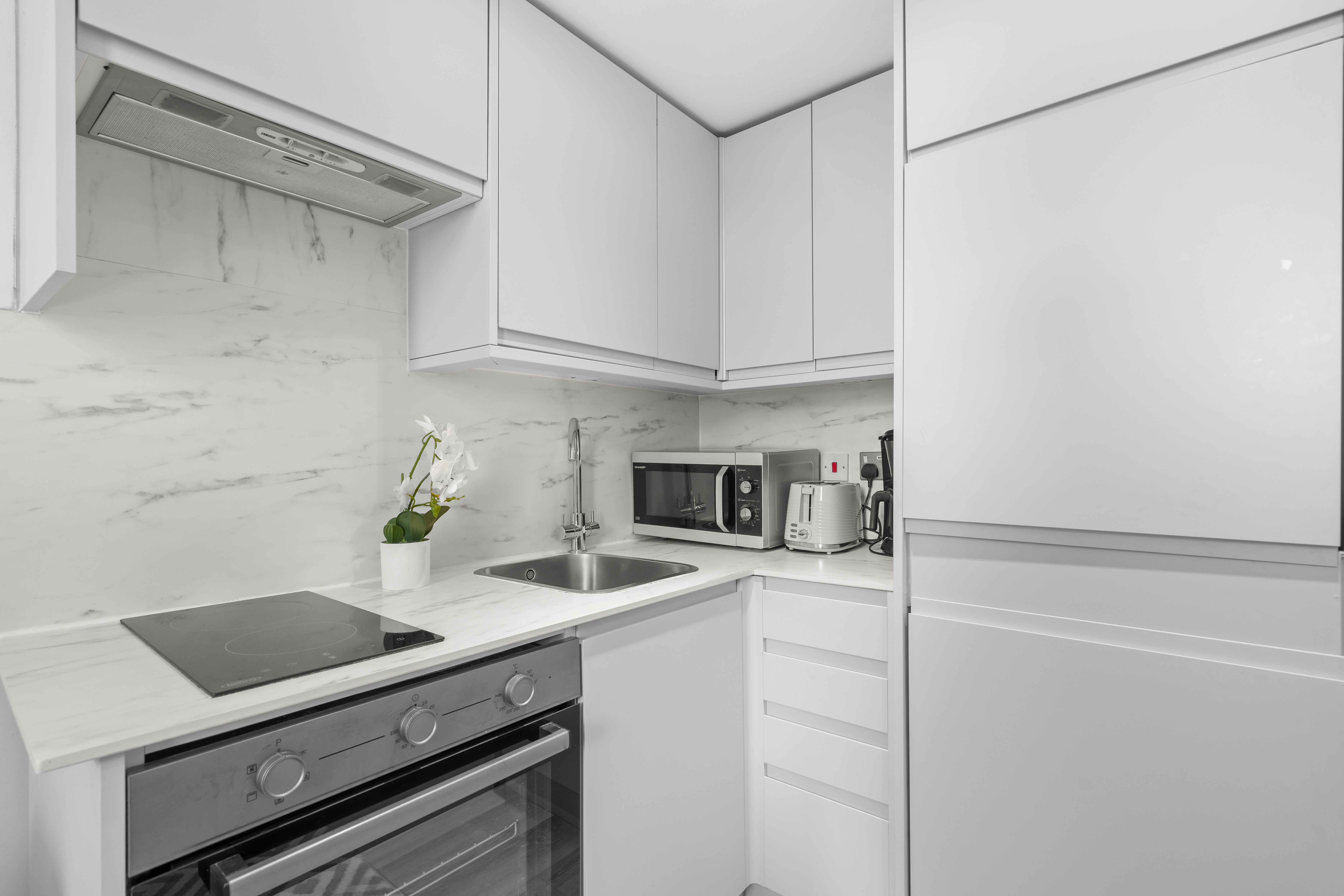A spectacularly sleek, modern and newly refurbished one bedroom ground floor flat. Complete with a fitted kitchen, wooden flooring, double bedroom, beautiful en -suite bathroom and with a cosy welcoming feel throughout.