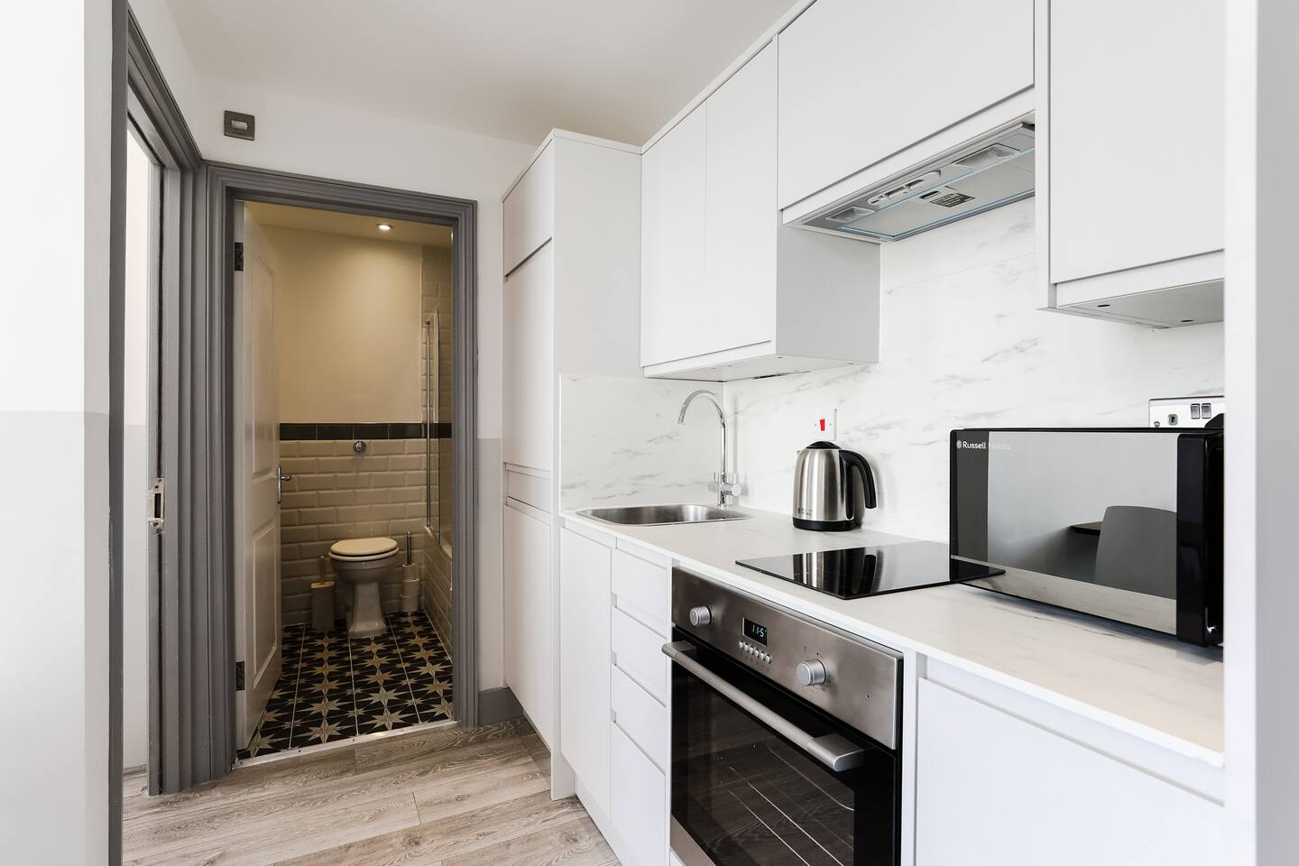 A Charming Kensington Retreat Stay in the heart of Kensington with this stylish 1-bedroom apartment — warm, welcoming, and perfectly equipped for a comfortable London stay. The Bedroom – Restful Nights Relax in a cosy double bed with fresh linens, a spacious wardrobe for your belongings, and soft lighting from bedside lamps. The Kitchen – Fully Equipped Cook with ease using the oven, microwave, fridge-freezer, hob, and kettle — ideal for anything from quick breakfasts to home-cooked dinners. The Living Room – Your Comfort Zone Unwind on the sofa (which also converts into a sofa bed), enjoy the wall-mounted flat-screen TV, and gather around the dining table with seating for four. A cosy armchair adds an extra touch of comfort. The Bathroom – Refresh & Rejuvenate Pamper yourself with a full bathtub and shower, quality toiletries, and plush towels. Extra Features ✨ Free high-speed Wi-Fi ✨ Modern, tasteful décor ✨ Access via staircase