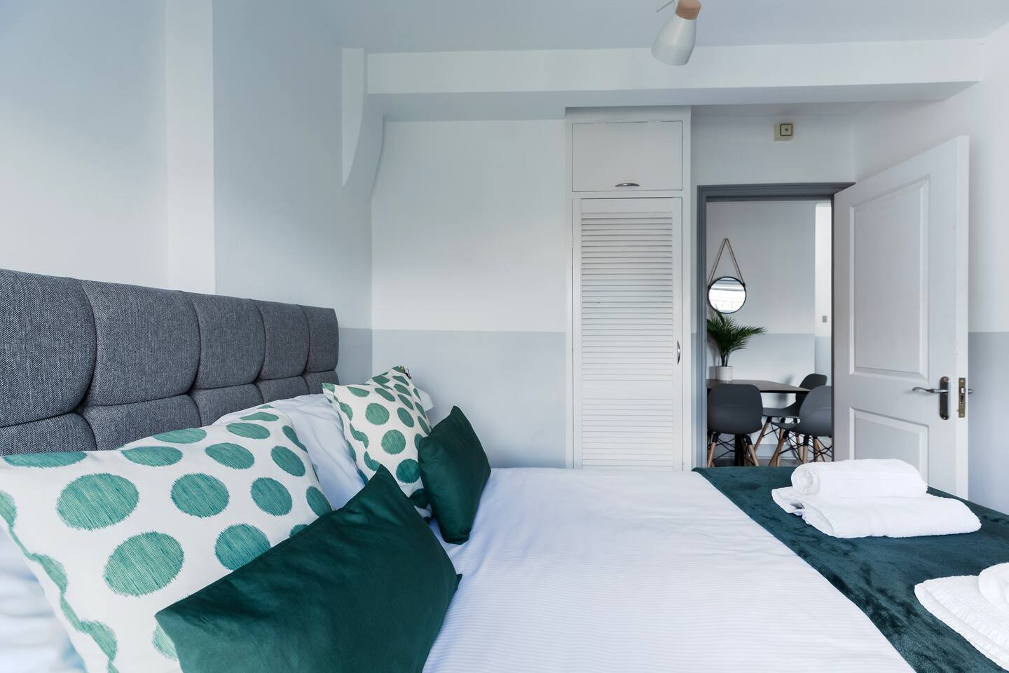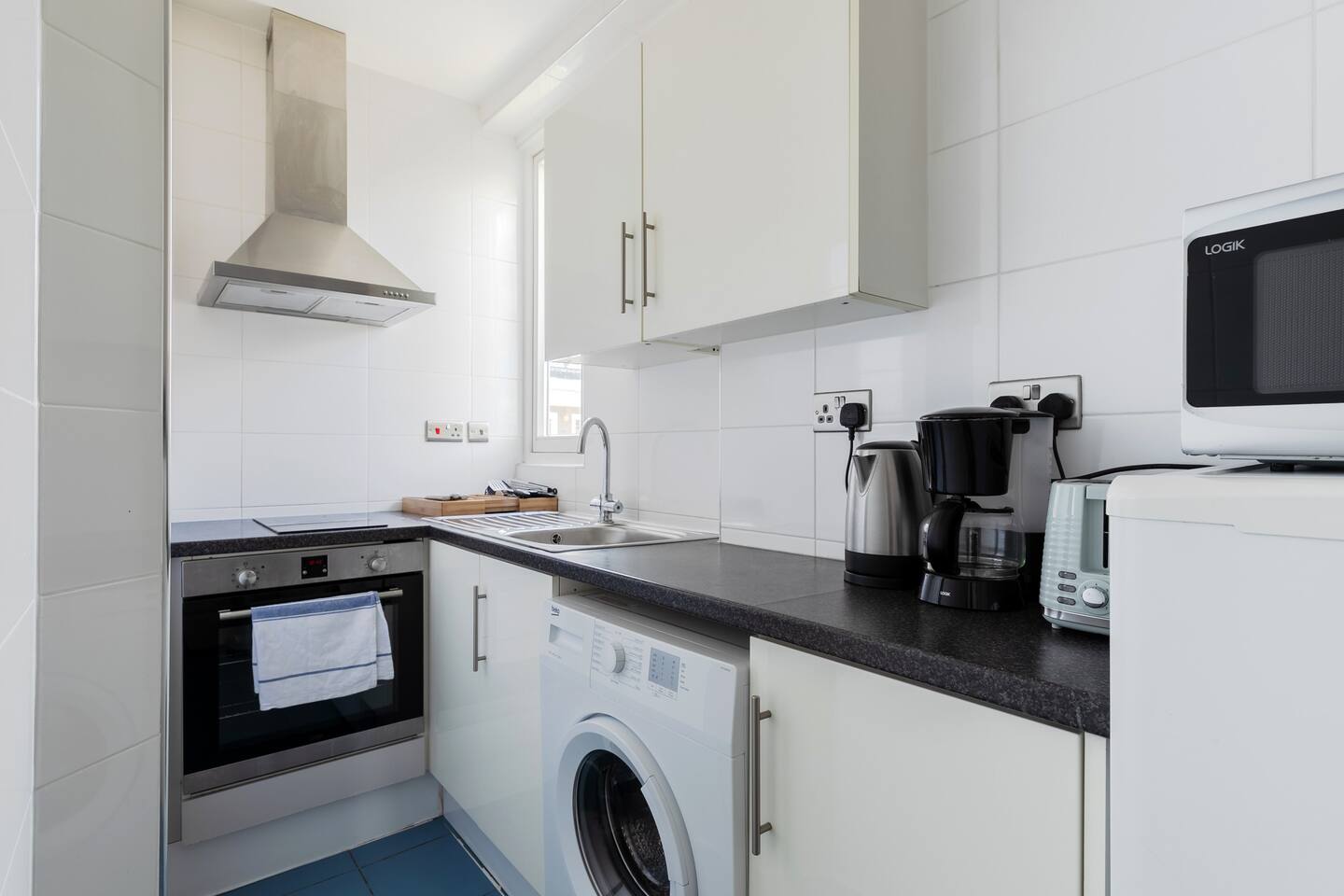 This stylish top floor flat benefits from modern interiors, lots of natural light, a separate kitchen, and bathroom with shower over the bath. There is a UK double bedroom and a sofa bed in the living room which open up to a comfortable double bed, accommodating up to 4 people in total. The kitchen has all the appliances and utensils you need to prepare and serve a meal. Apartment facilities include a washing machine, smart TV, hair dryer, bed linen and towels, and free Wi-Fi access