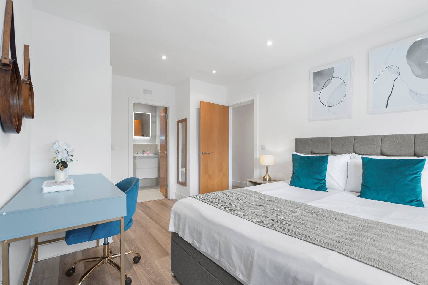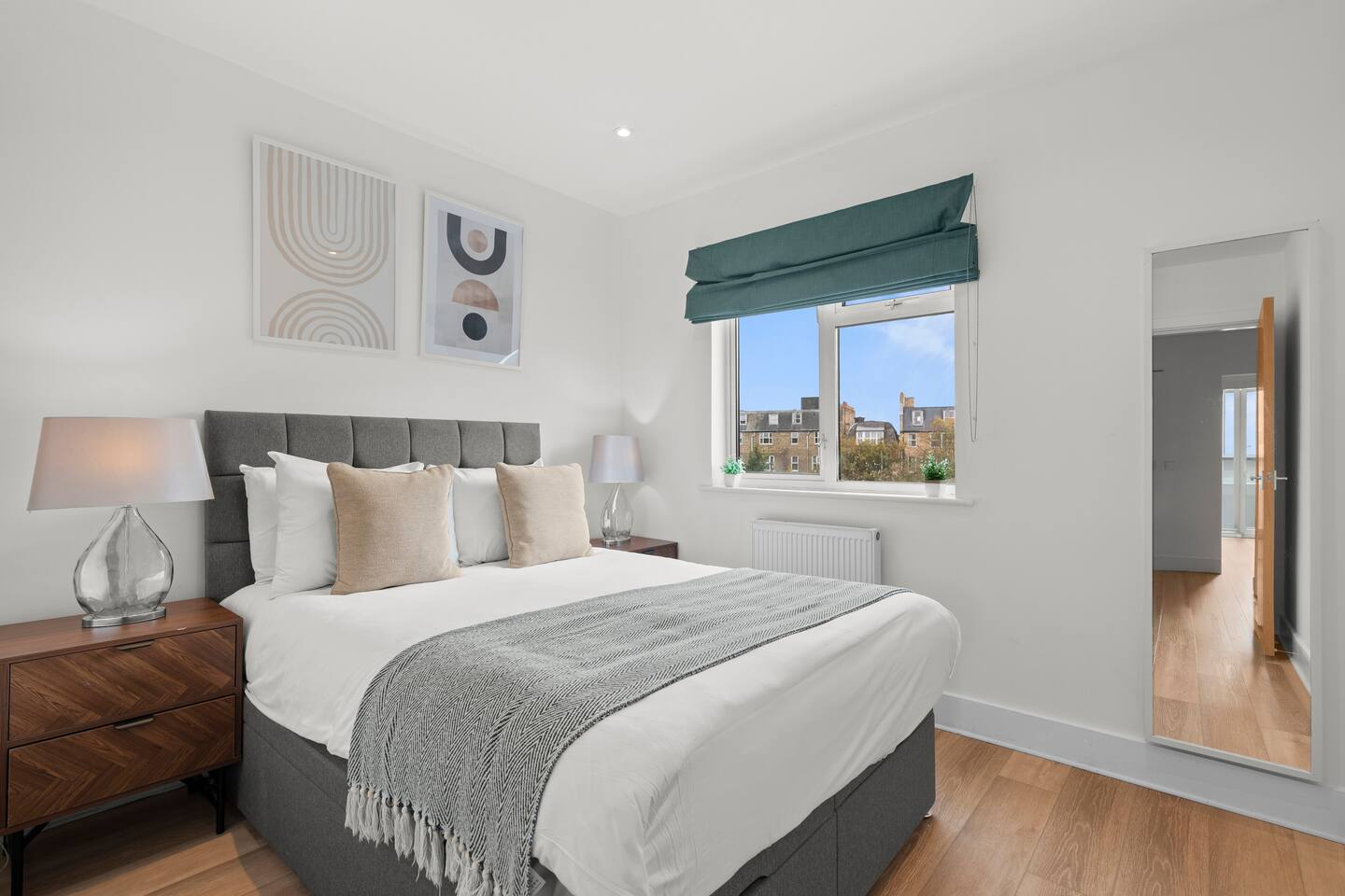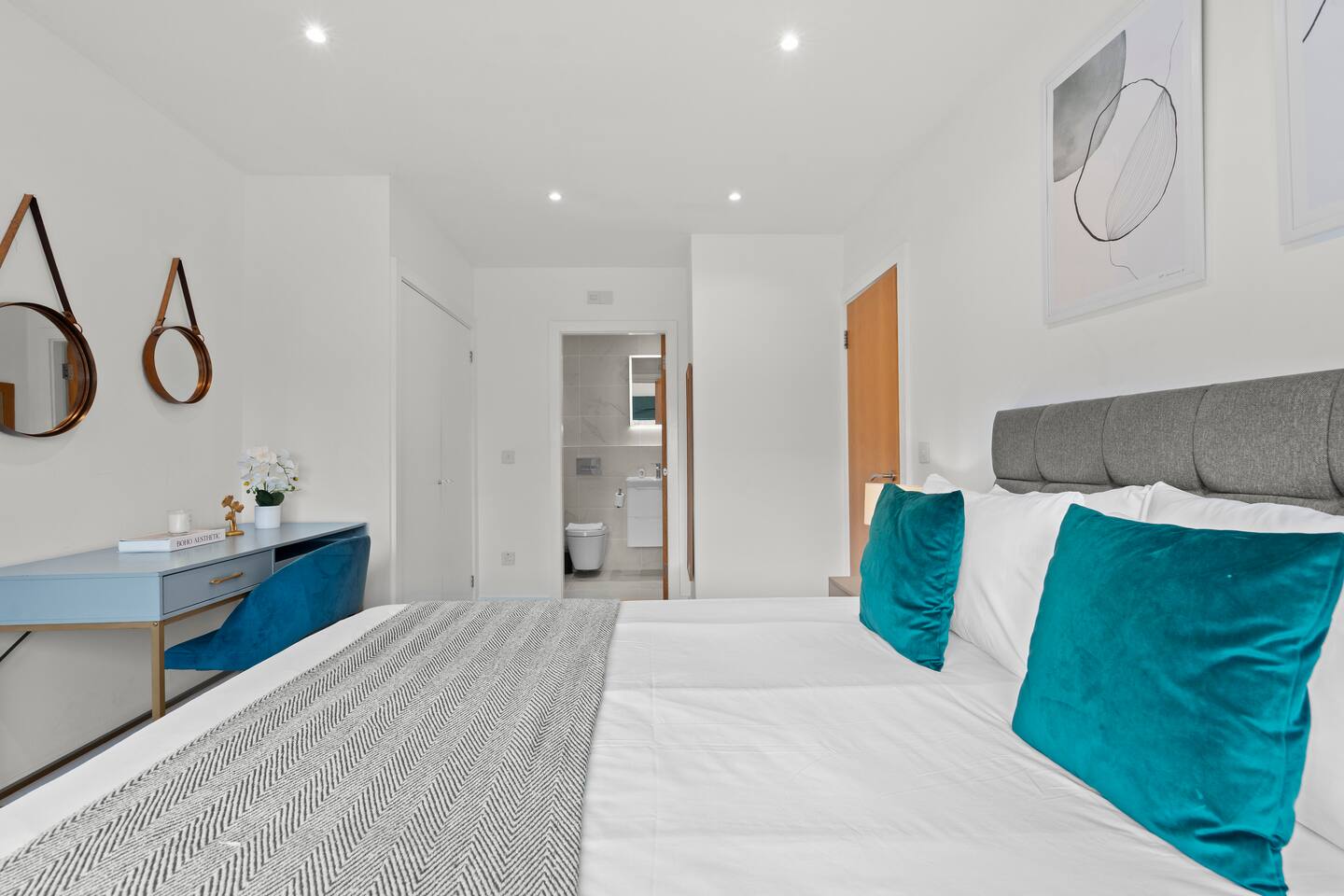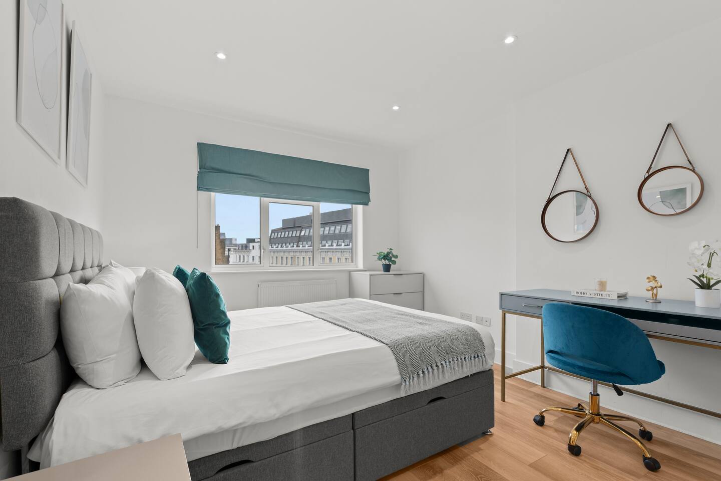 Sophisticated 2-bedroom penthouse in Earls Court with sweeping Kensington views. Sleeps 5 with a king ensuite, double bedroom, and sofa bed. Features a sleek family bathroom, fully equipped kitchen, high-speed WiFi, and lift access. Just 5 minutes from Earls Court Station, offering easy connections to London’s landmarks, museums, and luxury shopping. A perfect refined retreat for business or leisure stays.