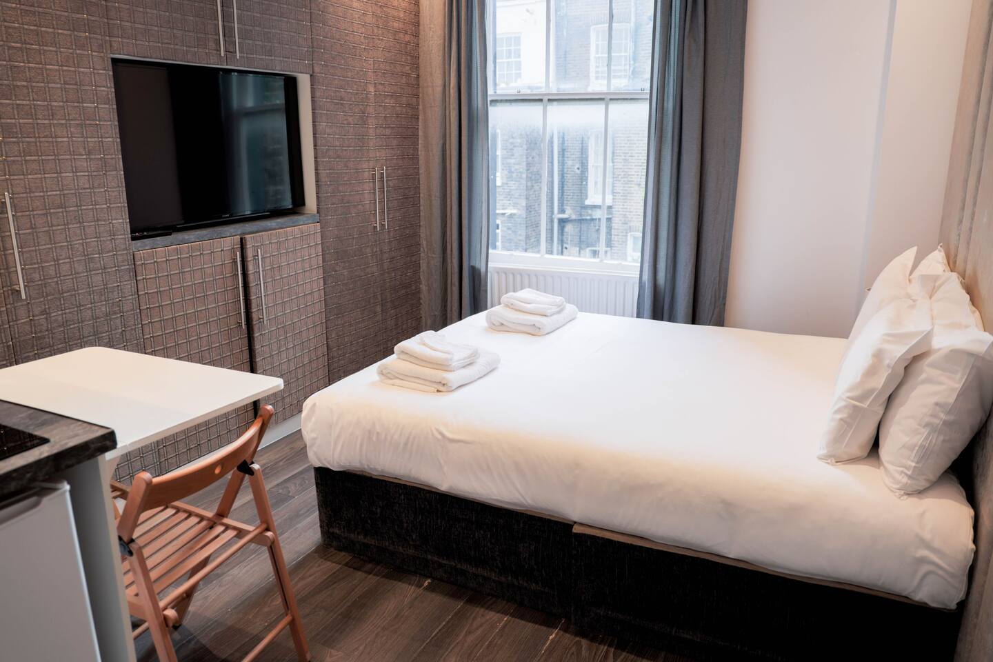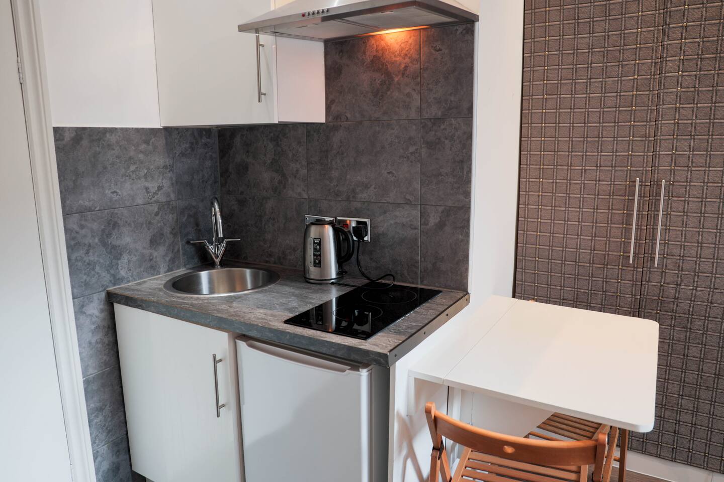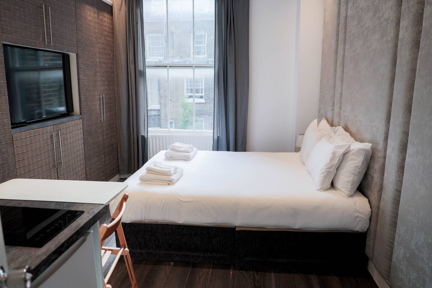 ✨ Stylish West London Studio – Your Perfect City Retreat ✨ Step into this modern, newly refurbished studio in the heart of West London! Enjoy sleek wooden floors 🪵, a luxurious bed 🛏️, a private bathroom 🚿, and a fully equipped kitchenette 🍳 — perfect for light meals or morning coffee. Whether you're a solo traveler or a couple on a city escape 🏙️, this cozy space has everything you need. Plus, convenient laundry facilities 🧺 are available in the building.