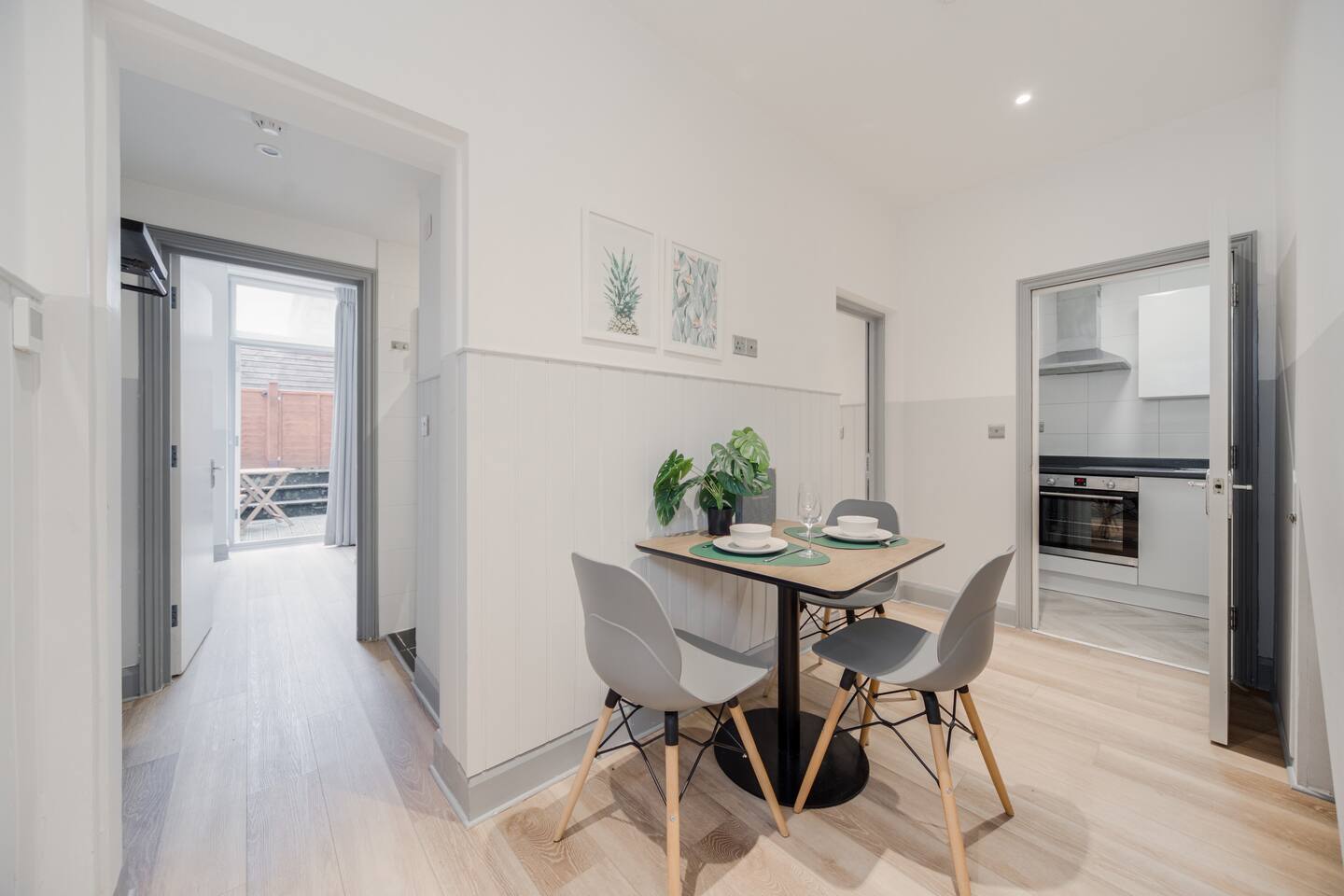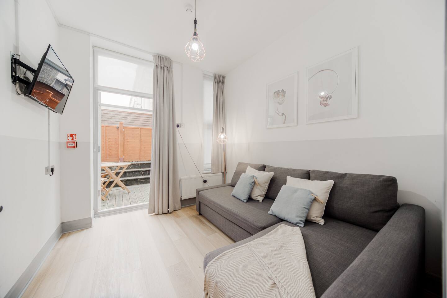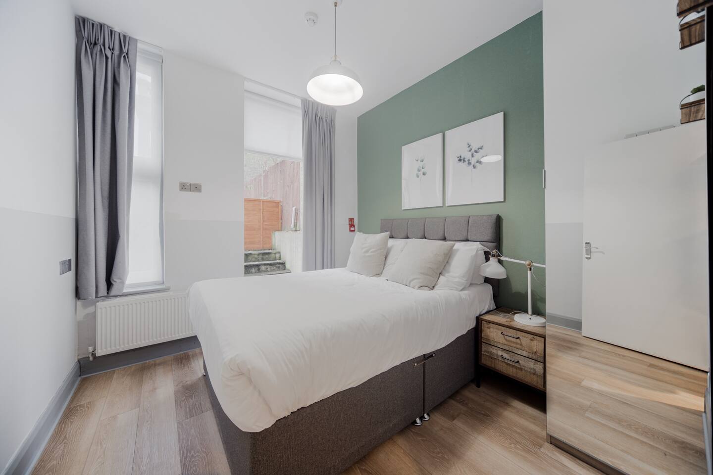 Our apartment is snugly located on the lower ground floor of a London townhouse. This popular flat comes complete with a modern fitted kitchen, stylish reception with a convertible sofa bed, a double bedroom with a UK standard double bed, two shower rooms wooden flooring and a cosy and welcoming feel throughout.