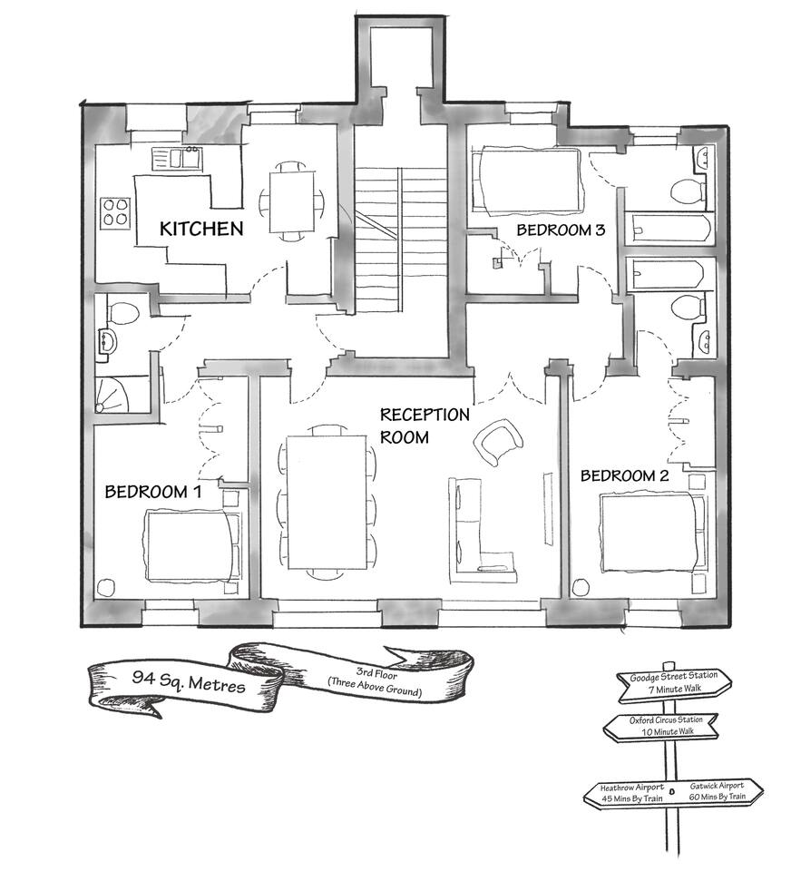 Prime Vision Living are proud to present this stunning three-bedroom, three-bathroom apartment situated in the heart of Fitzrovia.