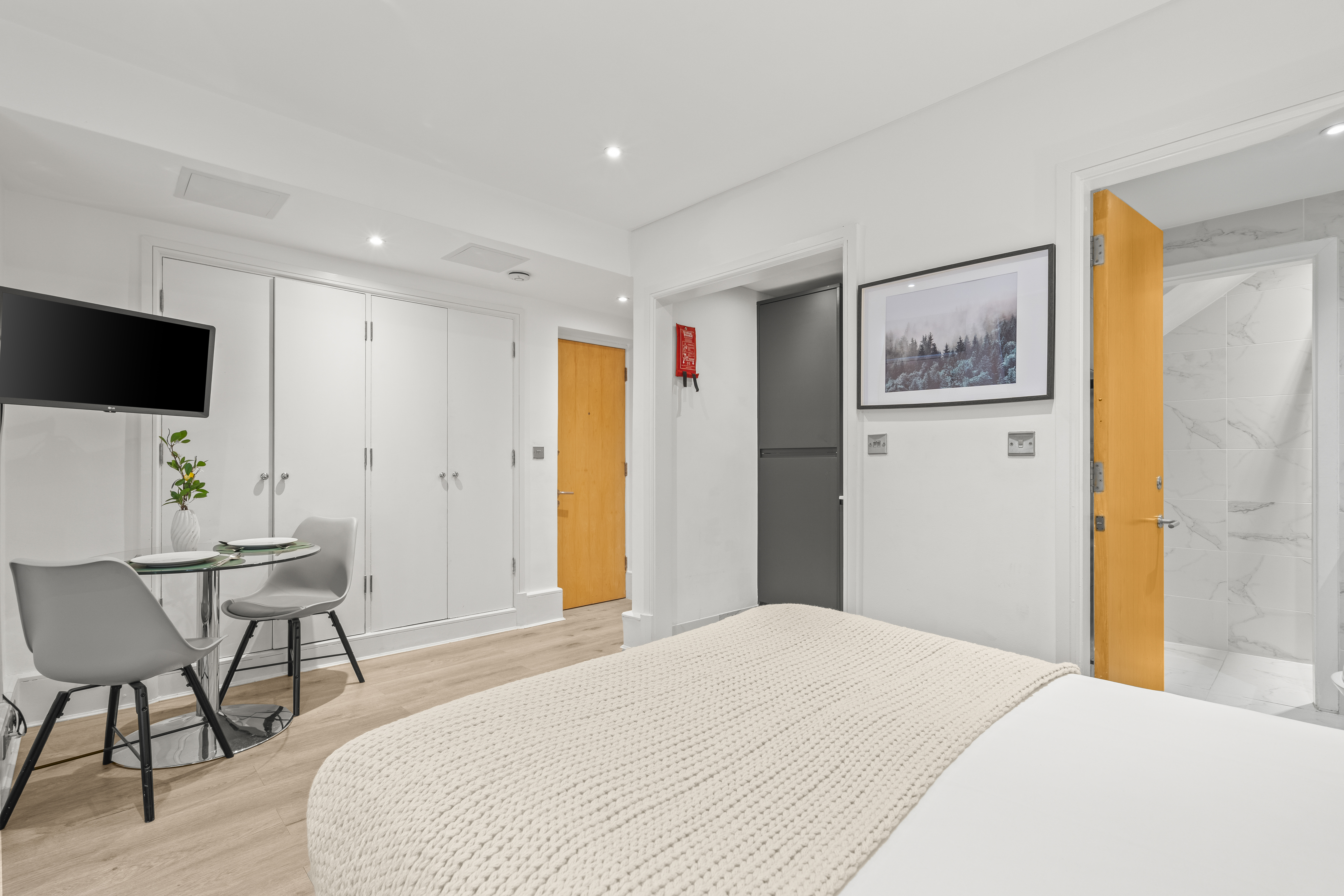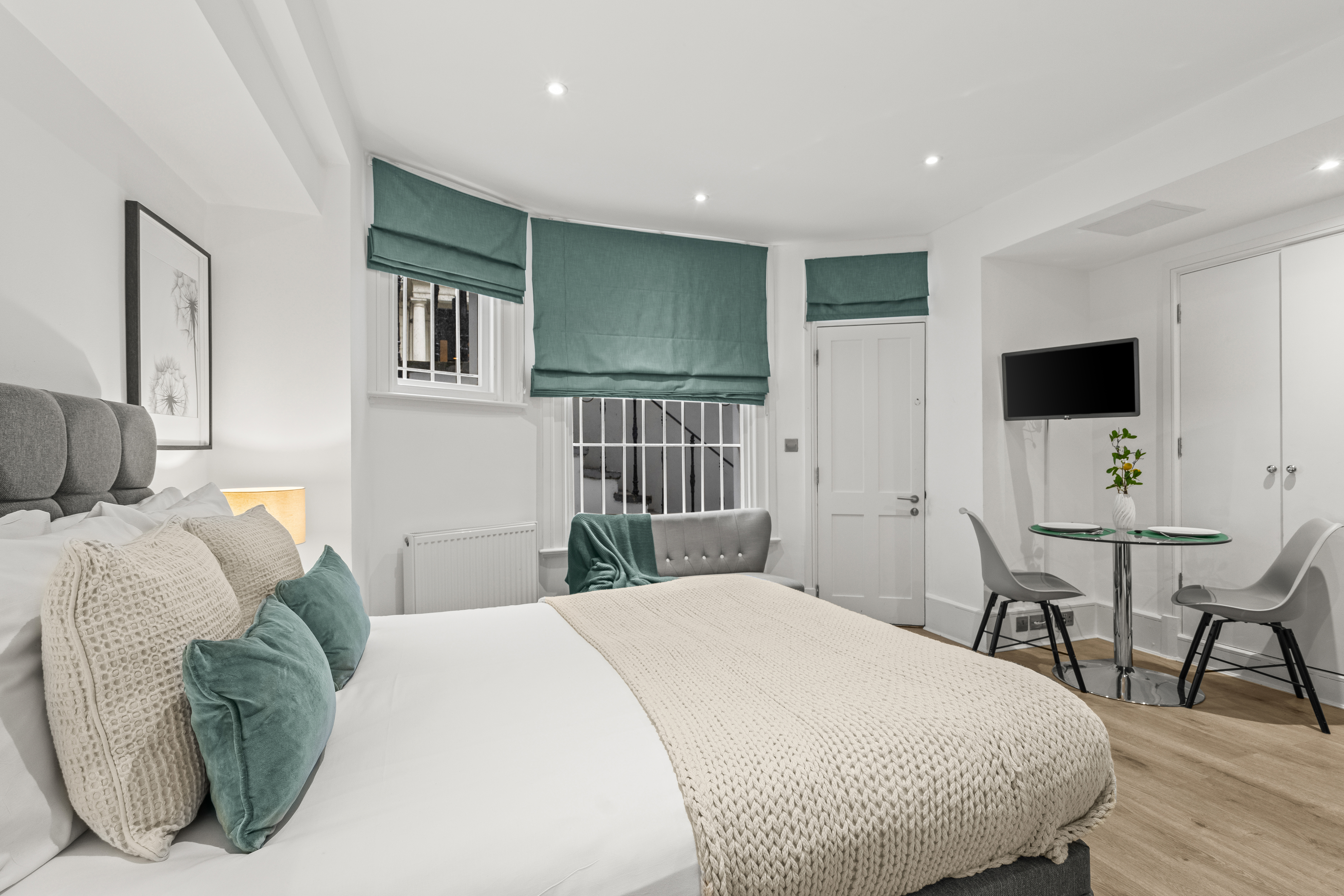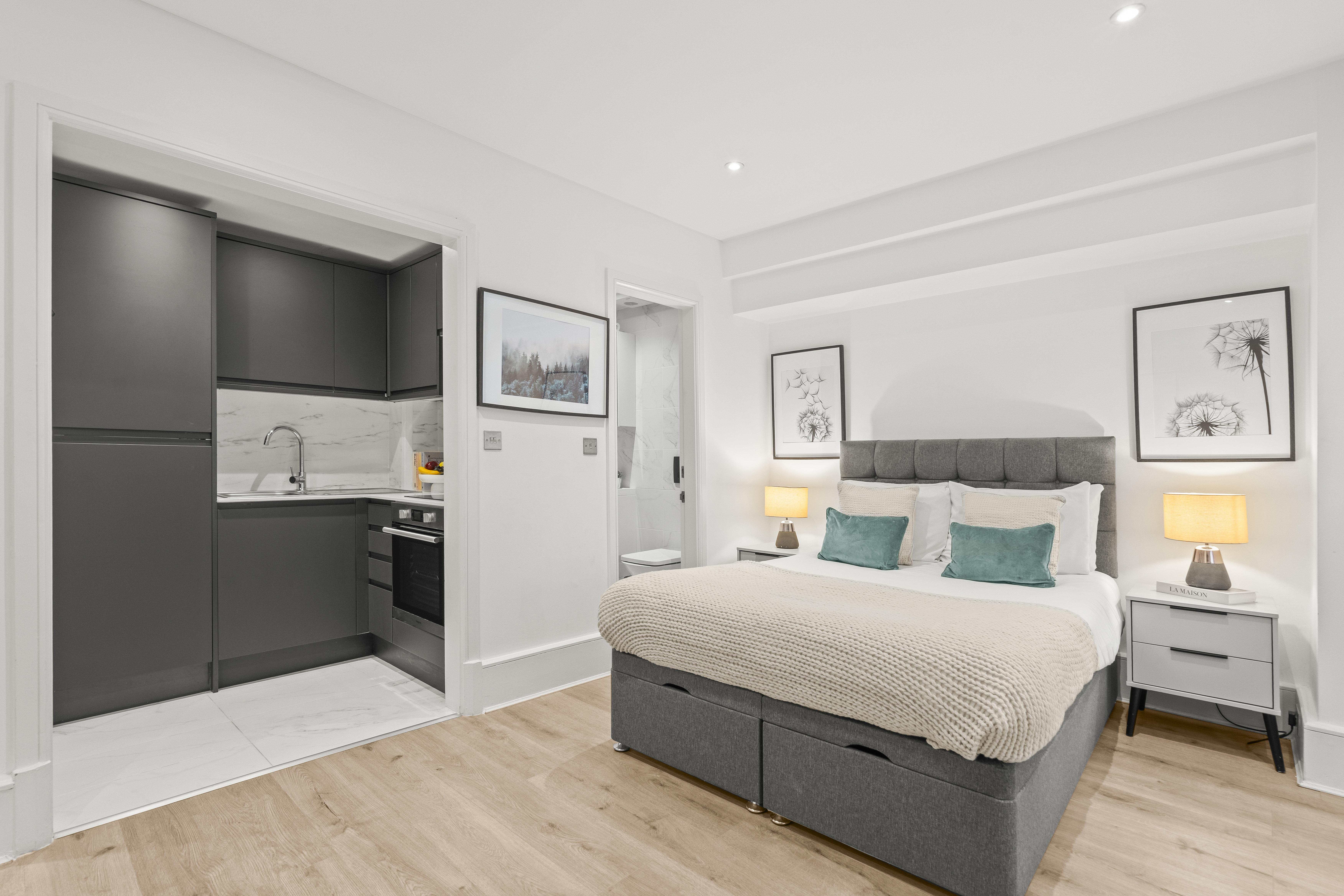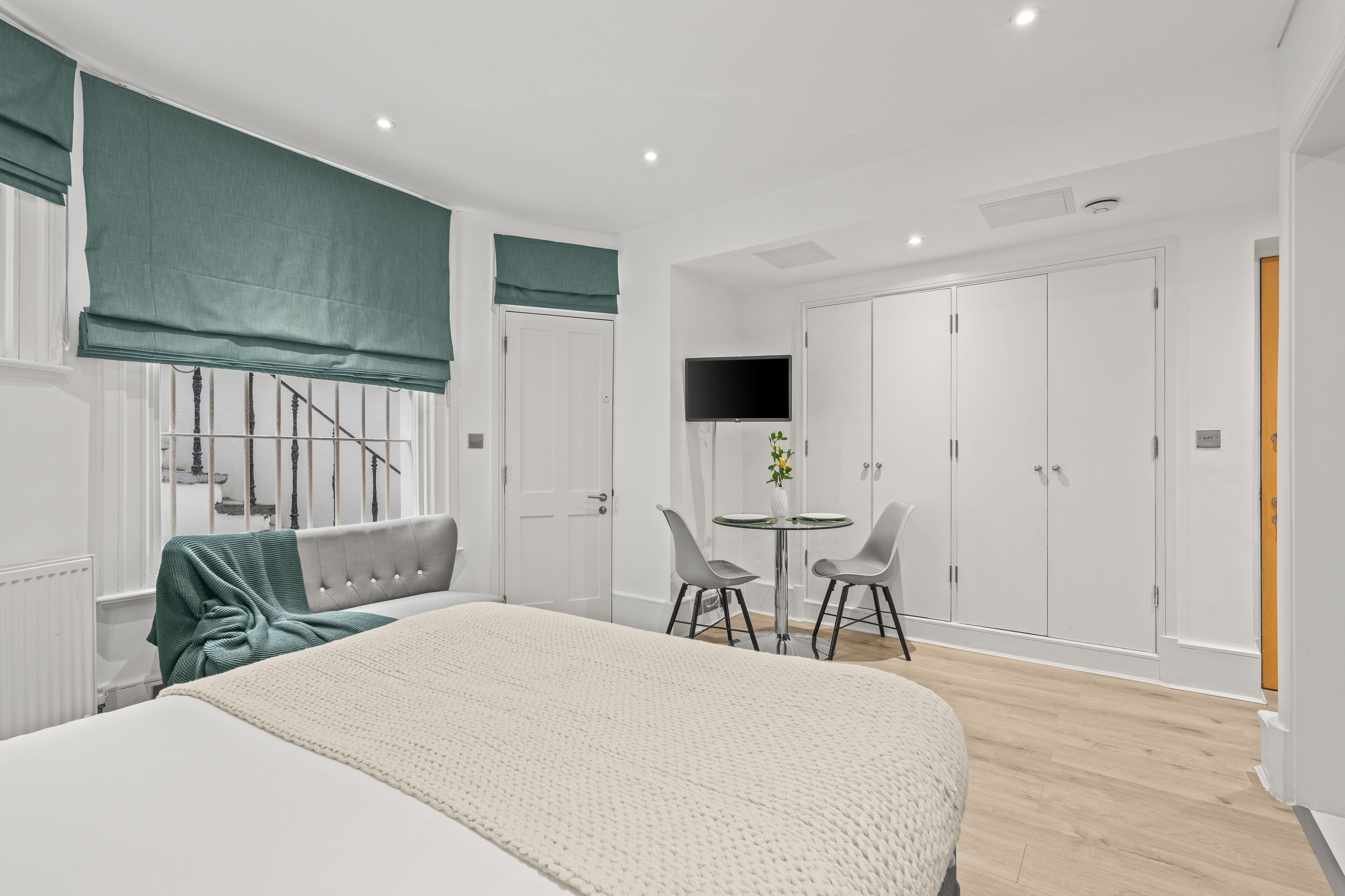 Gorgeous lower ground studio flat with stylish wooden flooring. A good sized kitchen with an oven, cooker & fridge and good storage space. A large living area with a double bed, comfortable sofa, smart TV and three large built in wardrobes. A good sized private bathroom with a shower and washing machine.