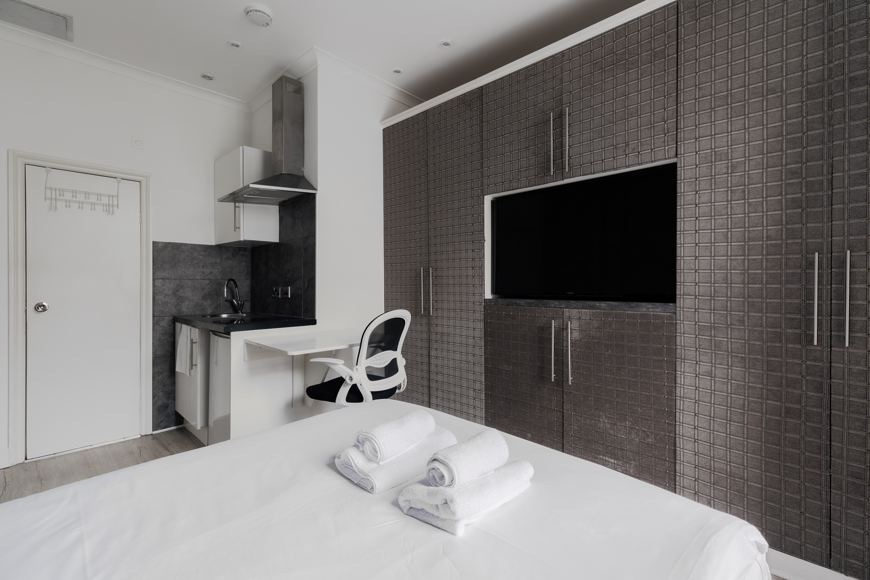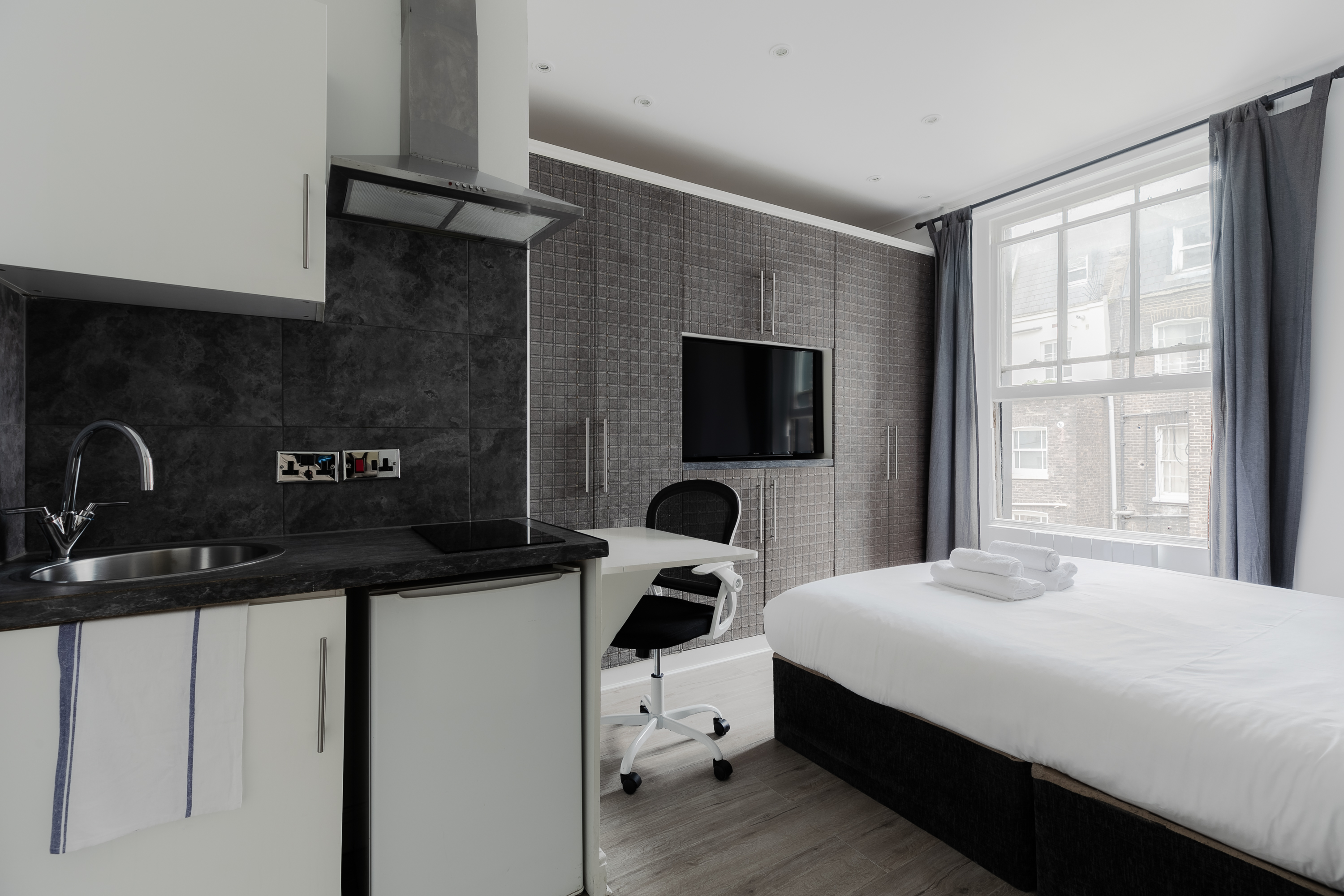 ✨ Stylish West London Studio – Your Perfect City Retreat ✨ Step into this modern, newly refurbished studio in the heart of West London! Enjoy sleek wooden floors 🪵, a luxurious bed 🛏️, a private bathroom 🚿, and a fully equipped kitchenette 🍳 — perfect for light meals or morning coffee. Whether you're a solo traveler or a couple on a city escape 🏙️, this cozy space has everything you need. Plus, convenient laundry facilities 🧺 are available in the building.